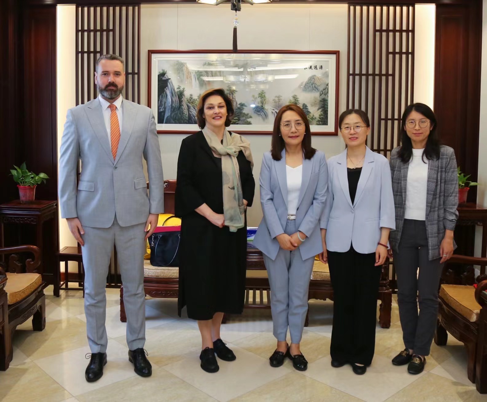 2024年6月11日,孙吉胜副院长会见黑山驻华大使馆临时代办达尼耶拉·久尔迪奇·戴迪奇(Daniela Durdic Dedic)一行,外事办公室主任马新宇、副主任王雨蒙等陪同会见。