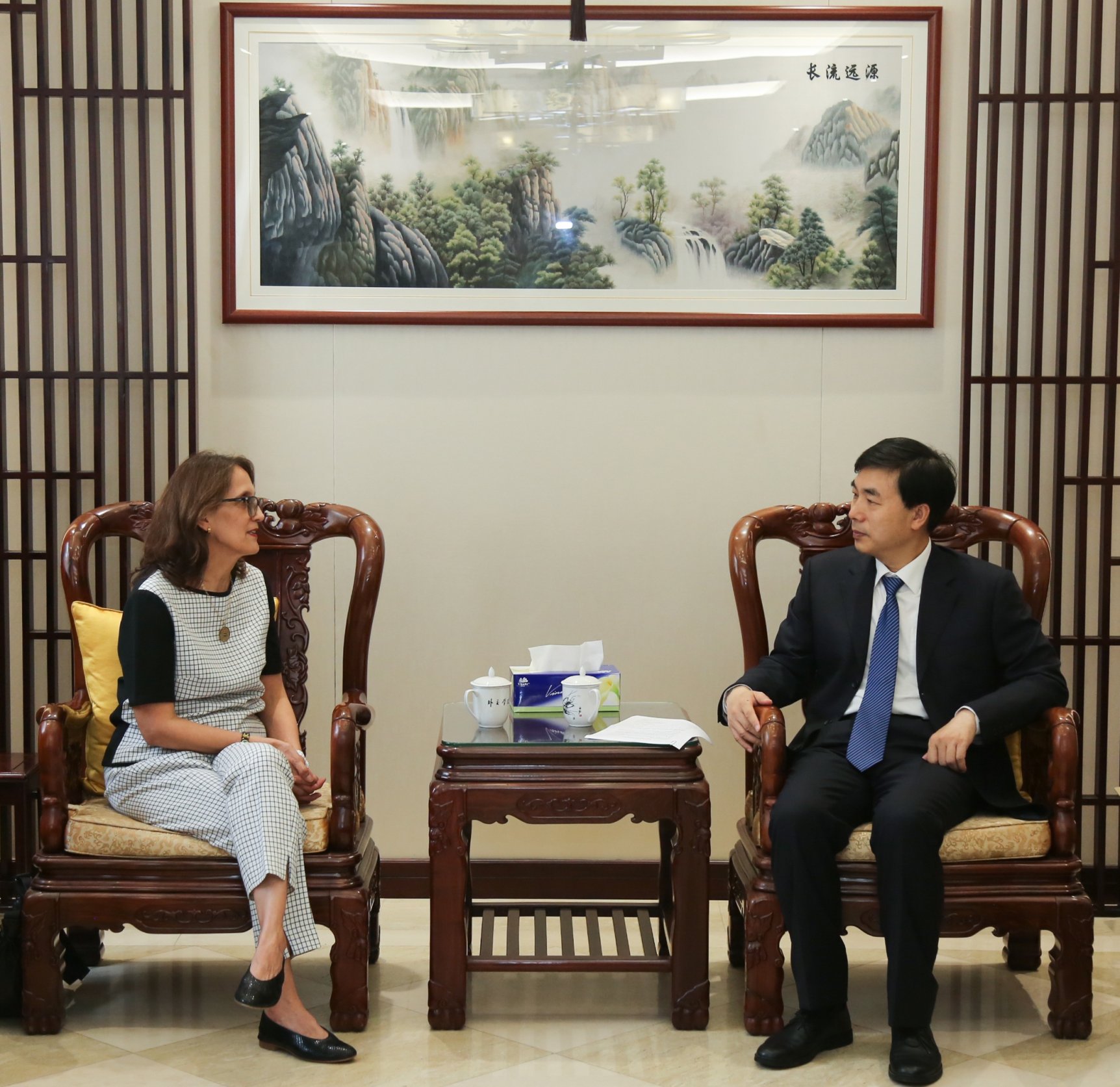 2024年4月26日,王帆院长会见厄瓜多尔驻华大使玛丽亚·索莱达·科尔多瓦·蒙特罗(María Soledad Córdova Montero)女士,外办主任马新宇等参加会见。