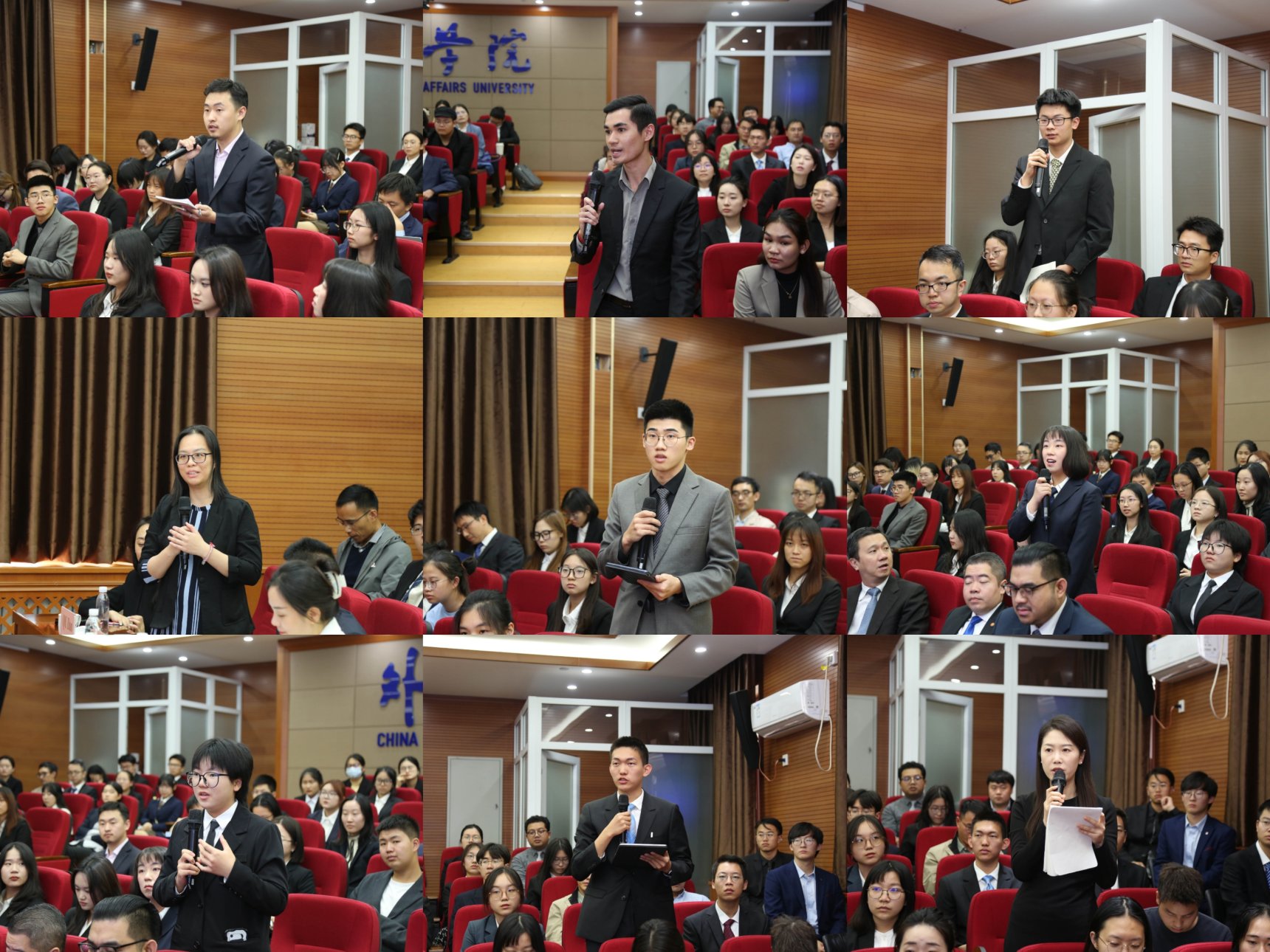 演讲结束后,高秘书长回答了我院学生及东盟国家留学生代表关于中国-东盟关系、高等教育交流、中美关系、“一带一路”建设等方面的提问。
