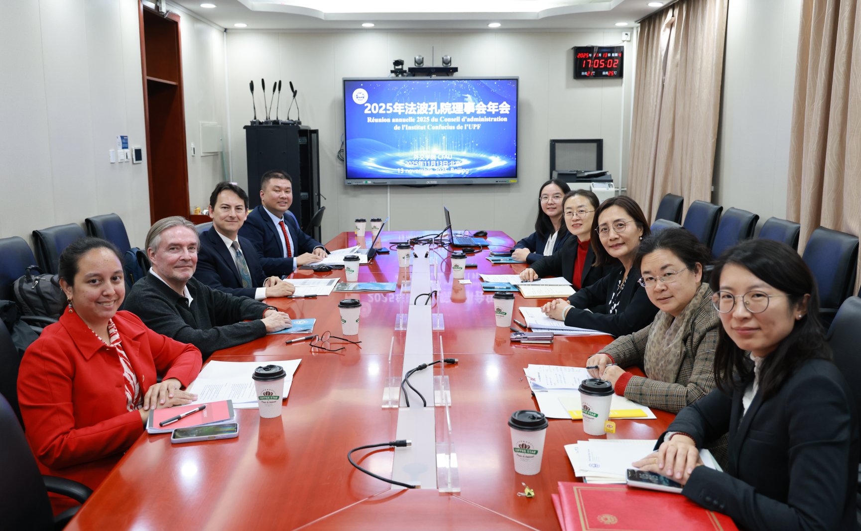 2025年11月13日,我院召开第九届法波孔院理事会年会,孙吉胜副院长作为理事长出席会议,其他中方参会人员包括外语系主任王晓侠、外办主任马新宇、法波孔院中方院长唐溪源、外办副主任王雨蒙及孔院办公室主任张瑞。法波方参会代表为法波大学校长Jean-Paul Pastorel、法波孔院法方院长Florent Atem以及法波孔院行政秘书Herenui Darius女士。本届理事会年会由马新宇主任主持。