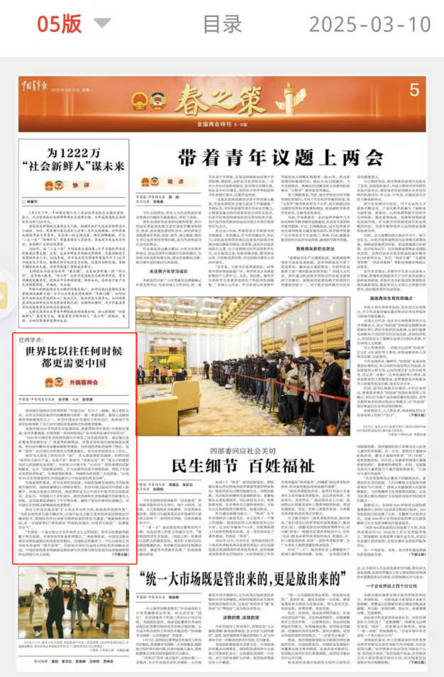 2025年,我院巴西籍教授马库斯·德·弗雷塔斯(Marcus De Freitas)就政府工作报告、中央经济工作会议、中巴及全球南方合作等话题多次接受中国青年报专访,专访文章应时发声,立意深远,反响热烈。