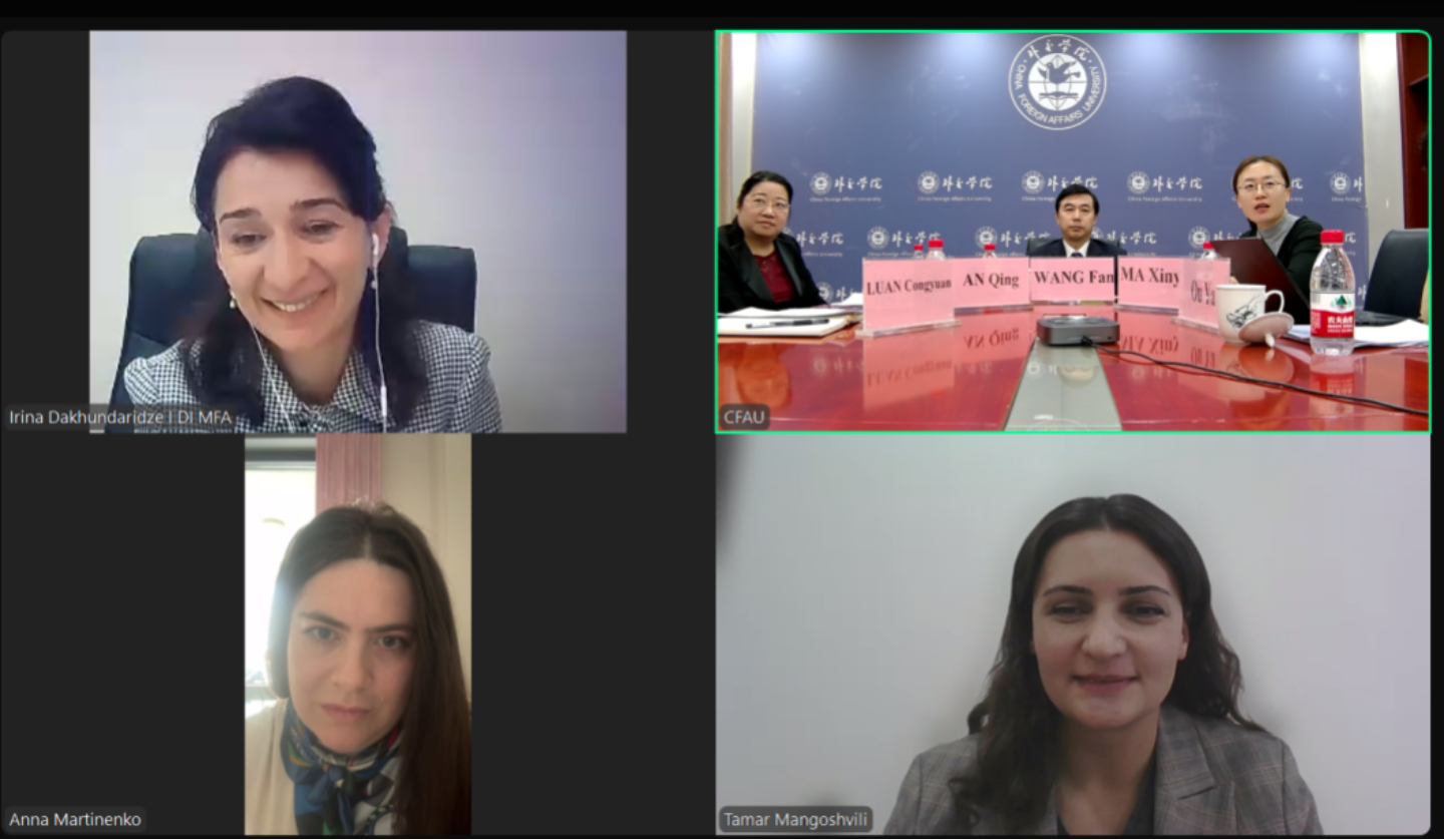 2025年3月12日,我院与格鲁吉亚外交学院举办线上视频会议,我院院长兼中国外交培训学院院长王帆、专职党委副书记兼中国外交培训学院副院长安青与格外交学院院长Irina Dakhundaridze、副院长Tamar Mangoshvili就两院开展合作事宜进行交流。