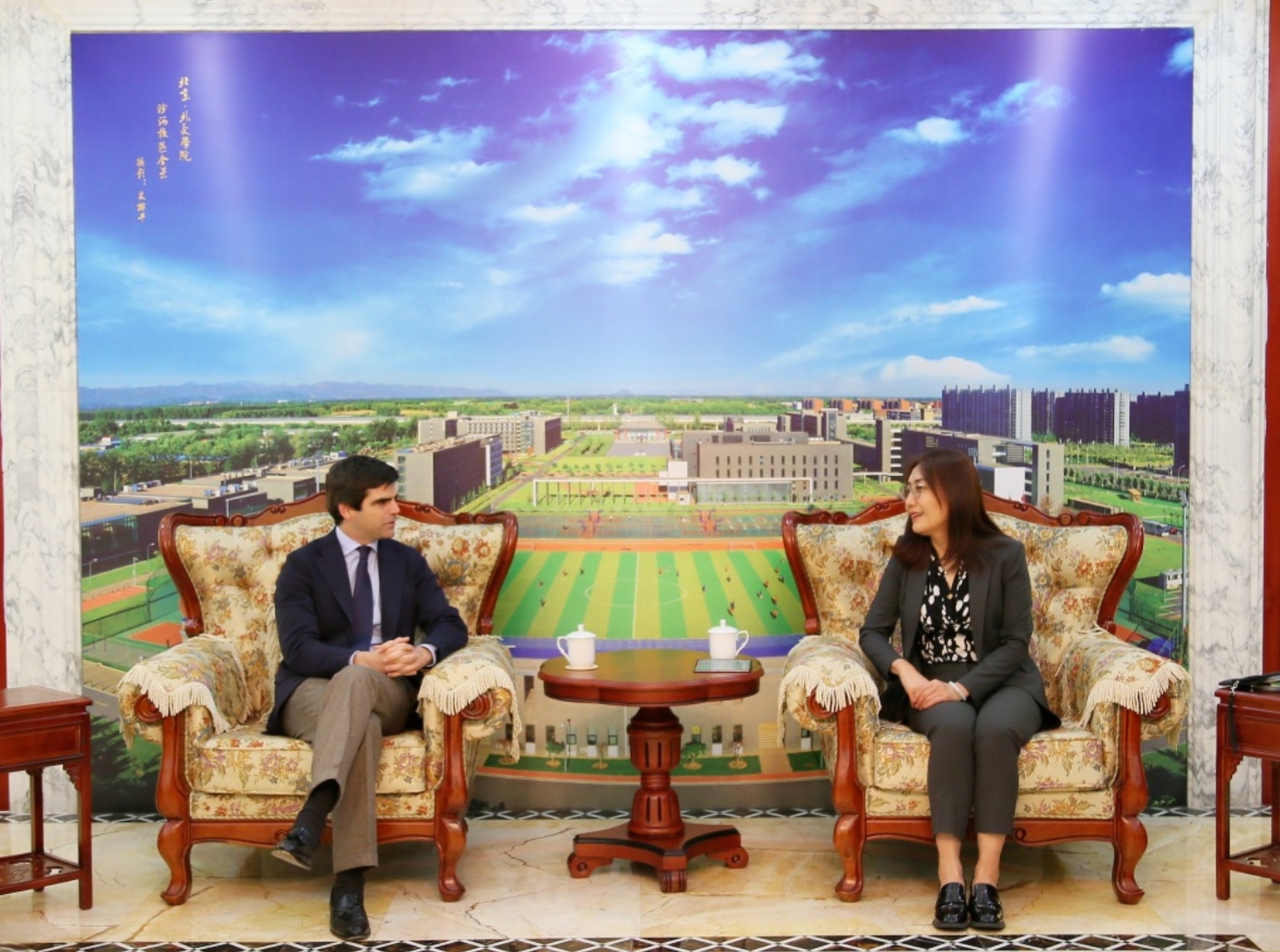 2023年11月30日,孙吉胜副院长在沙河校区会见西班牙IE大学集团首席执行官迭戈•阿尔卡萨•本朱梅亚(Diego del Alcázar Benjumea)先生、教务长曼努埃尔•穆尼斯(Manuel Muñiz)教授(副校长级)等一行,外办主任马新宇、副主任王雨蒙等陪同会见。