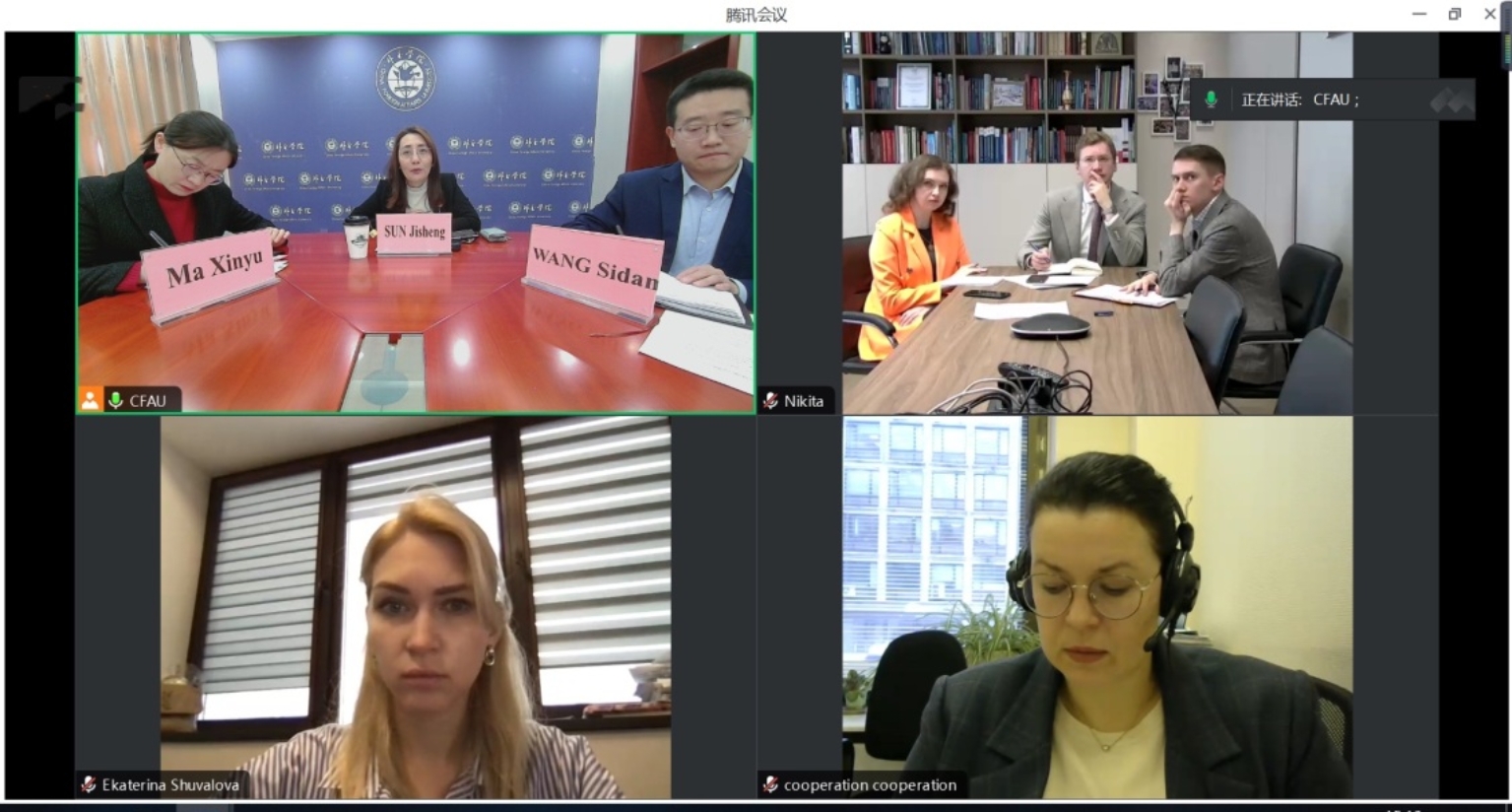 2023年12月19日,我院与俄罗斯莫斯科国际关系学院(Moscow State Institute of International Relations University, 以下简称“莫国关”)举办线上会议,就进一步加强两院合作交流进行探讨。孙吉胜副院长和莫国关副院长 Ekaerina Shouvalova出席。外事办公室主任马新宇、副主任王雨蒙、国际关系研究所教师王思丹以及莫国关国际关系系主任Andrey Sushentsov、莫国关国际处项目负责人Daria Chentsova等参会。